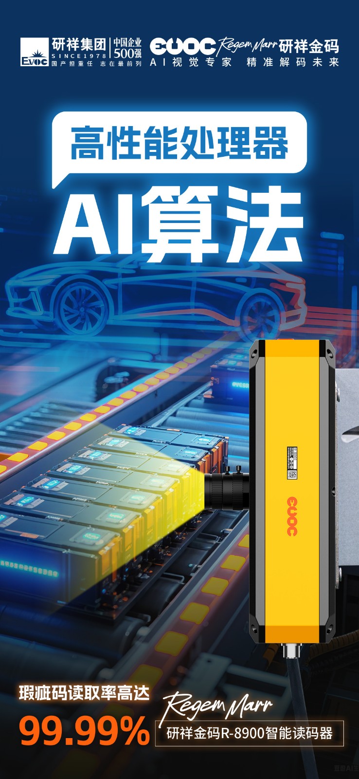 作为行业首款4700万像素的智能读码器,公海jcjc5500R-8900单次识读即可覆盖500+条码,视野范围高达常规读码器的25倍。